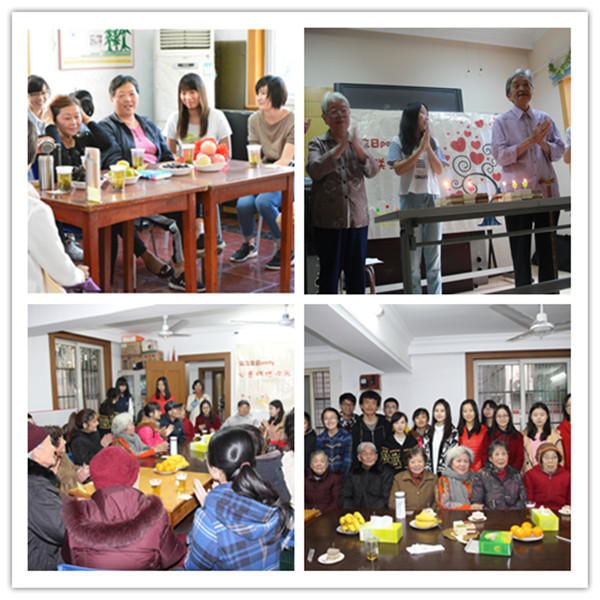 公益生日Party每月一次,在五角场街道各社区活动室,汇集本社区本月过生日老人举办集体生日派对,主要包括开场介绍、游戏环节、生命故事、生日蛋糕、心愿分享、才艺表演等环节。