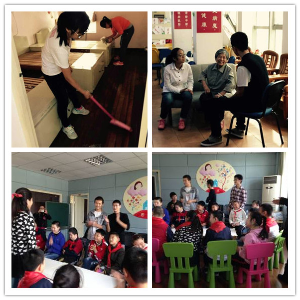 走进长寿福利院,打扫卫生、陪老人聊天、表演节目等,让孤寡老人感受社会温暖。走进新华医院儿童病房,和患儿聊天等,让爱心接力传递。走进密云学校,主办“感恩我的老师”主题班会,用爱心守护祖国的花朵,用行动见证服务他人,用爱心凝聚力量,让学生感受到来自社会的关怀。走进流浪猫狗收留处,清理杂物、关爱动物、珍惜生命。正是在这点滴的服务中,奉献志愿者的爱心,在关爱中让自己的情感得以升华,在友爱互助中获得共同进步。