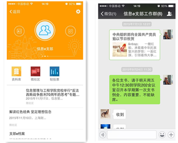 2、 选好配强党支部书记,定期开展专题培训和业务指导。学院设立的“信息e支部工作群” 微信群,让各位支部书记在网络平台中及时交流和沟通各个支部工作的开展情况。定期开始支部书记的理论学习和业务指导:为支部书记订阅《支部生活》刊物,发放《大数据时代》等学习资料。2015年9月首次实施支部书记向全体党员述职制度,由支部书记汇报上一学期支部生活开展情况,介绍本学期支部生活安排,自觉接受党员同学监督。