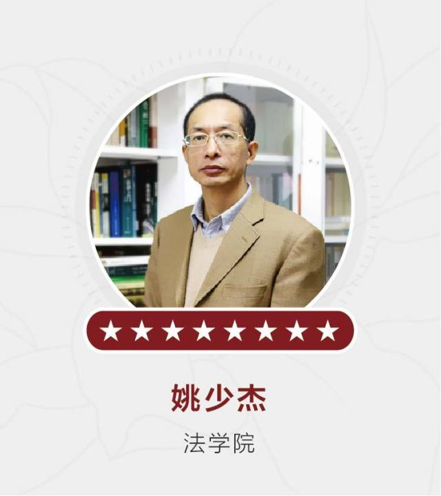 姚少杰,法学院法学理论专业讲师,主要开设《中国法制史》、《外国法制史》、《西方法律思想史》、《中外法律文化 》、《传统中国的法律与社会》等课程,他把法学教育事业作为志业,先后8次获评“我心目中的好老师”。姚少杰老师恪守“古之学者为己”的初心,在法律史领域辛勤耕耘二十余载,对中国哲学有自己的领悟和见解。他把教学看作是师生互相欣赏的美妙旅程,课堂上他总是耐心听取学生发表的观点,积极回应学生提出的问题。他开设的《中外法律文化》等通识课程深受学生的喜爱,在思想碰撞中产生新火花,在文化交流中孕育新视角,引领学生从更宽广的角度看待历史和社会问题。